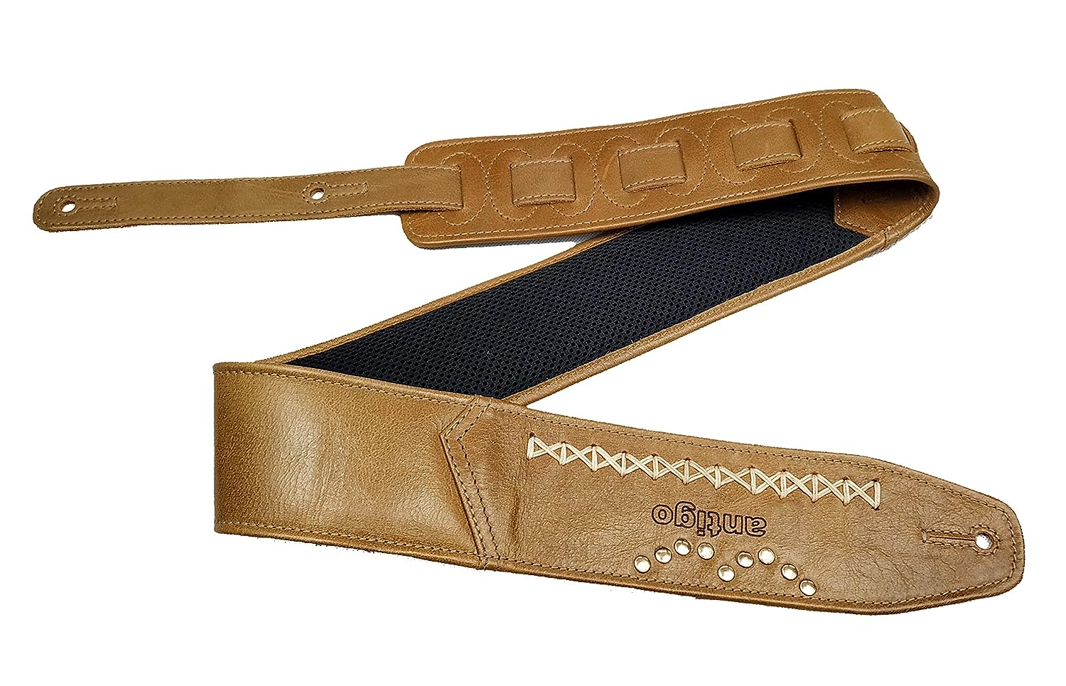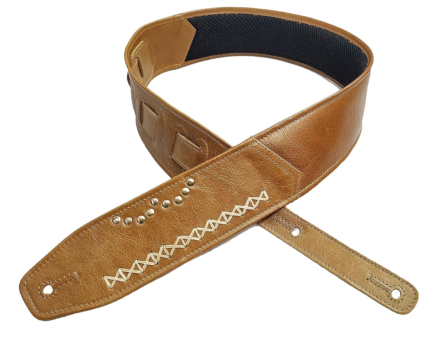 Antigo 3 Inch Wide 15 MM Cushion Padded Leather Guitar Strap/ Belt Size Adjustable 42-56 Inch with NAME CUSTOMIZATION for BASS/ ELECTRIC/ ACOUSTIC/ HEAVY/ METAL GUITARS with Braid PICK HOLDER RVD-G-011